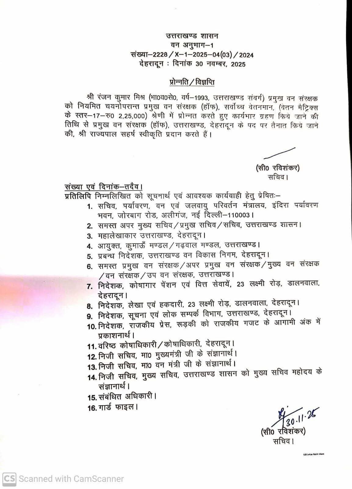 The post IFS अधिकारी रंजन कुमार मिश्र बने उत्तराखंड वन विभाग के नए मुखिया first appeared on doonvoice.
