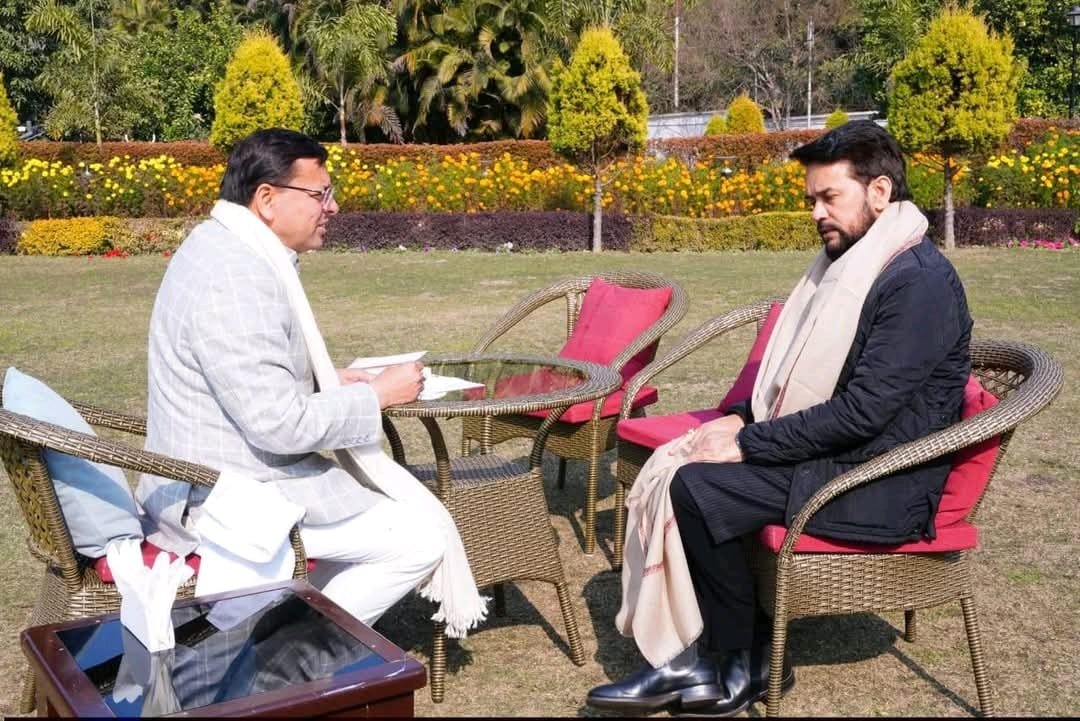 देहरादून : मुख्यमंत्री पुष्कर सिंह धामी से मुख्यमंत्री आवास में सांसद एवं पूर्व केंद्रीय मंत्री अनुराग सिंह ठाकुर ने शिष्टाचार भेंट की।